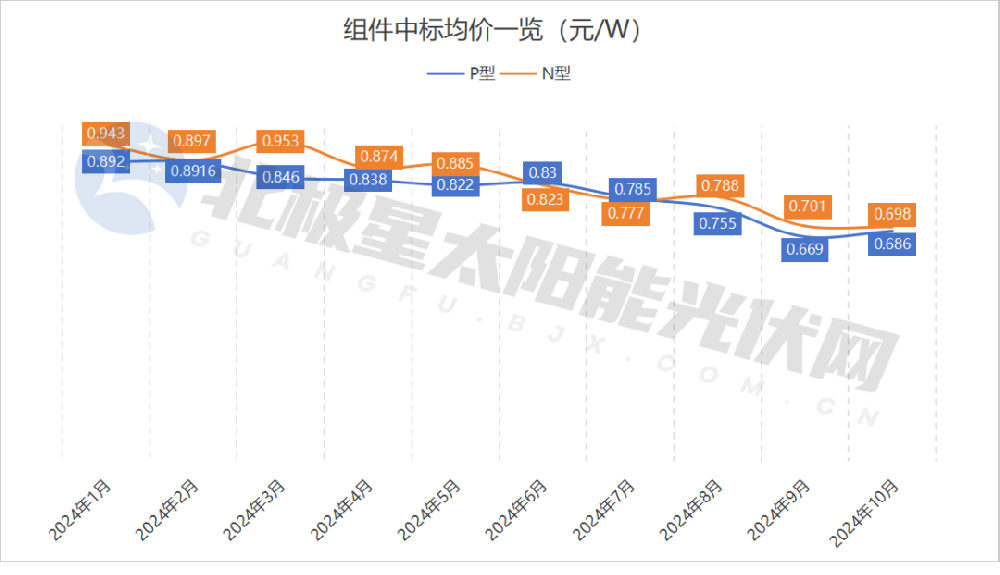 北极星梳理近期光伏组件投标及中标价格来看,自行业协会“反内卷”会议后,光伏组件投标价格有所提升。如10月22日,中节能2024年度光伏组件框架协议采购开标,该项目采购2.5GW的N型TOPCon双面组件,投标均价0.694元/W,报价范围为0.675-0.722元/W。