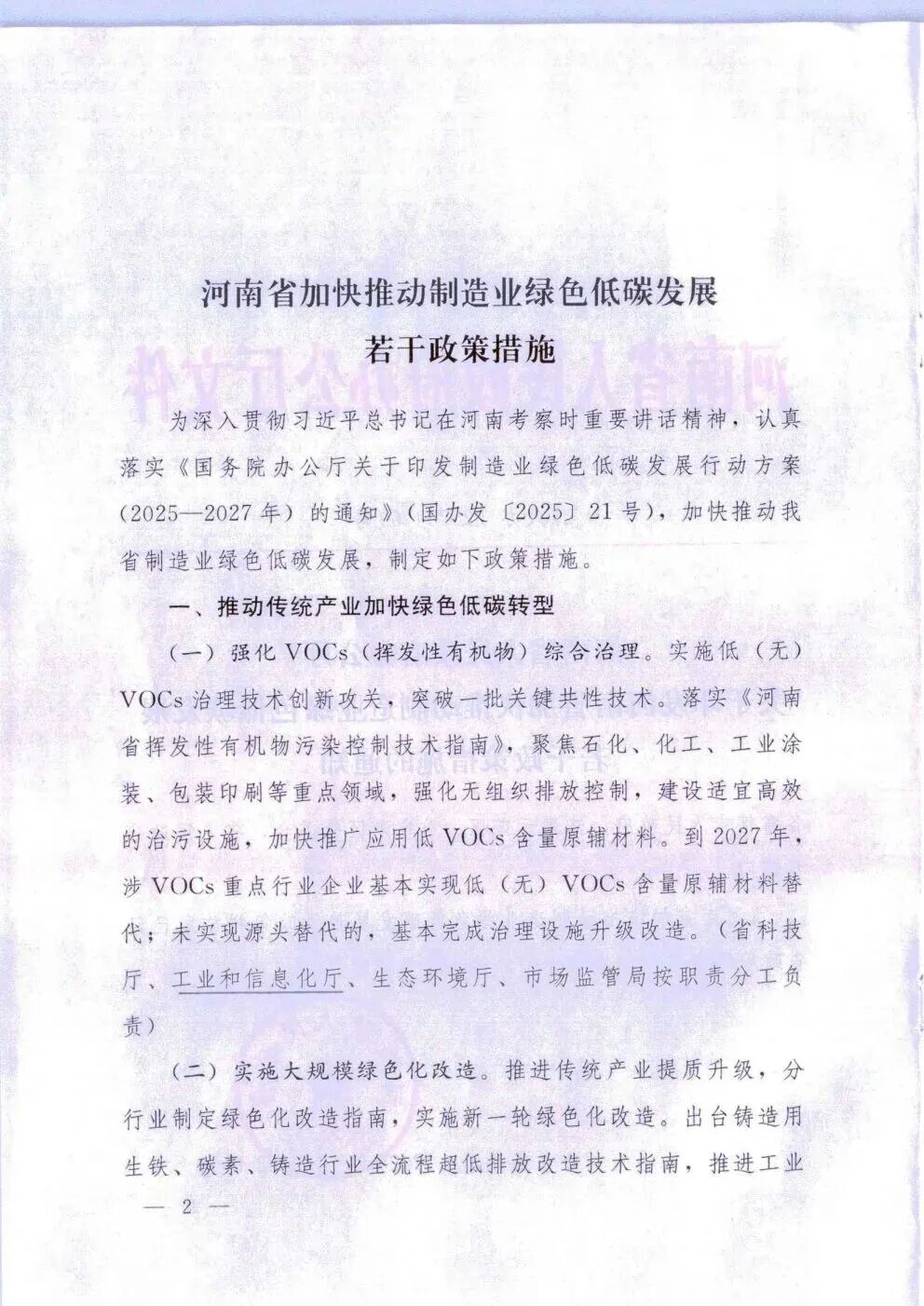近日,河南省人民政府印发《河南省加快推动制造业绿色低碳发展的若干政策措施》(以下简称《措施》),从推动传统产业加快绿色低碳转型、推动壮大绿色低碳产业发展规模、推动提升资源循环利用能力突破等6个方面出台了21条举措,加快提升河南制造业绿色竞争优势。