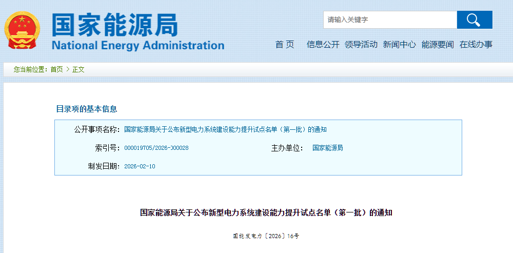 2月26日,国家能源局发布关于公布新型电力系统建设能力提升试点名单(第一批)的通知。