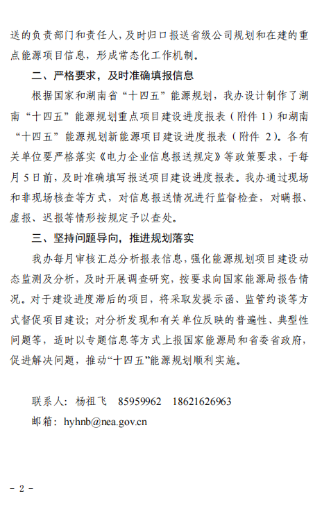 湖南“十四五”能源规划重点项目建设进度信息报送工作的通知