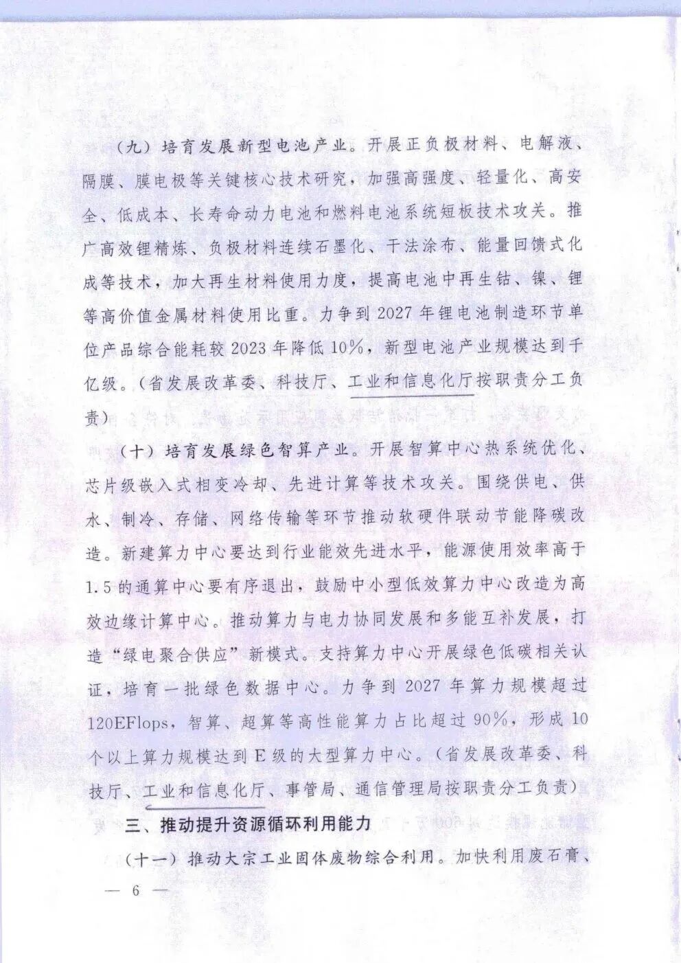 《措施》提出,要把资源环境友好型产业作为制造业绿色低碳发展的关键发力点,加快培育新能源汽车、节能环保装备、氢能、新型储能、新型电池、智算等绿色低碳产业,从增量上塑造制造业绿色低碳发展的新动能新优势。力争到2027年,新能源汽车、节能环保装备产业规模分别达到3000亿元,氢能、新型储能、新型电池产业规模分别达到千亿级,并形成10个以上算力规模达到E级的大型算力中心。